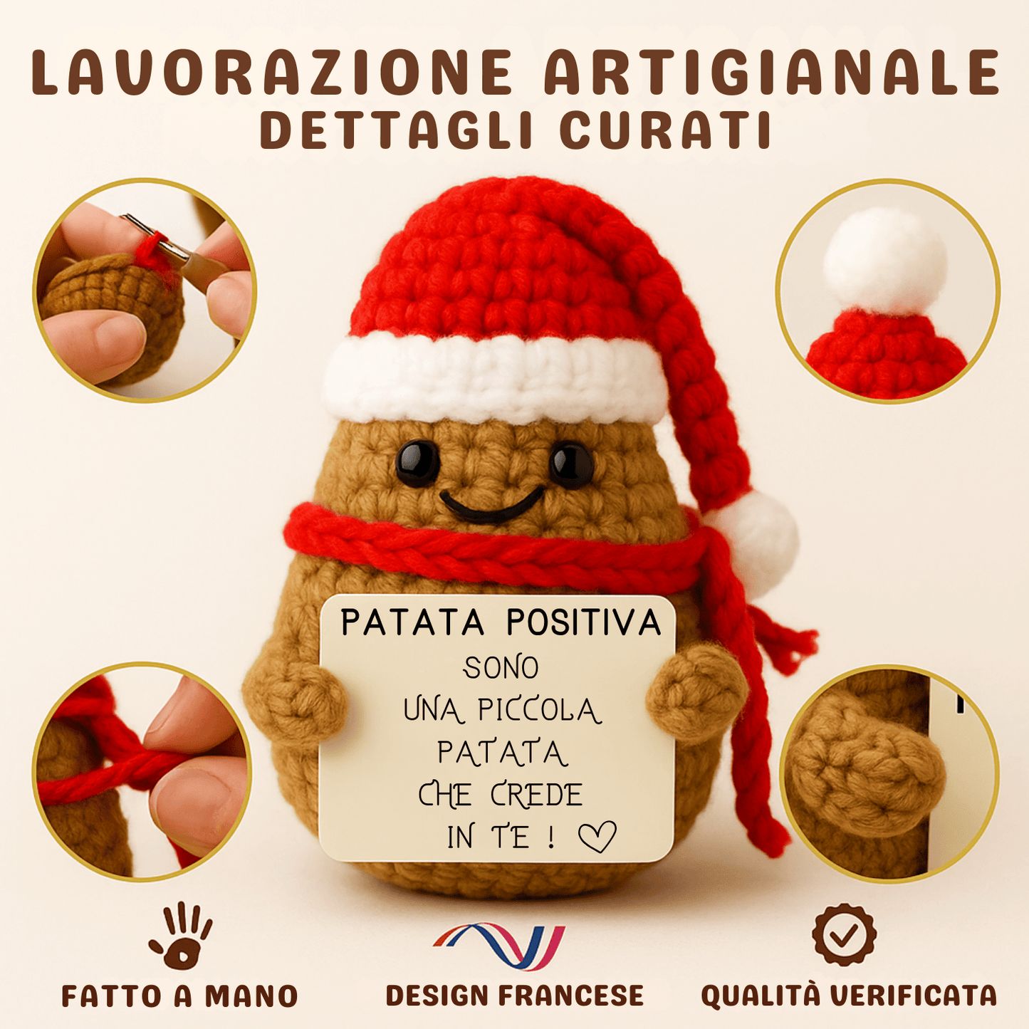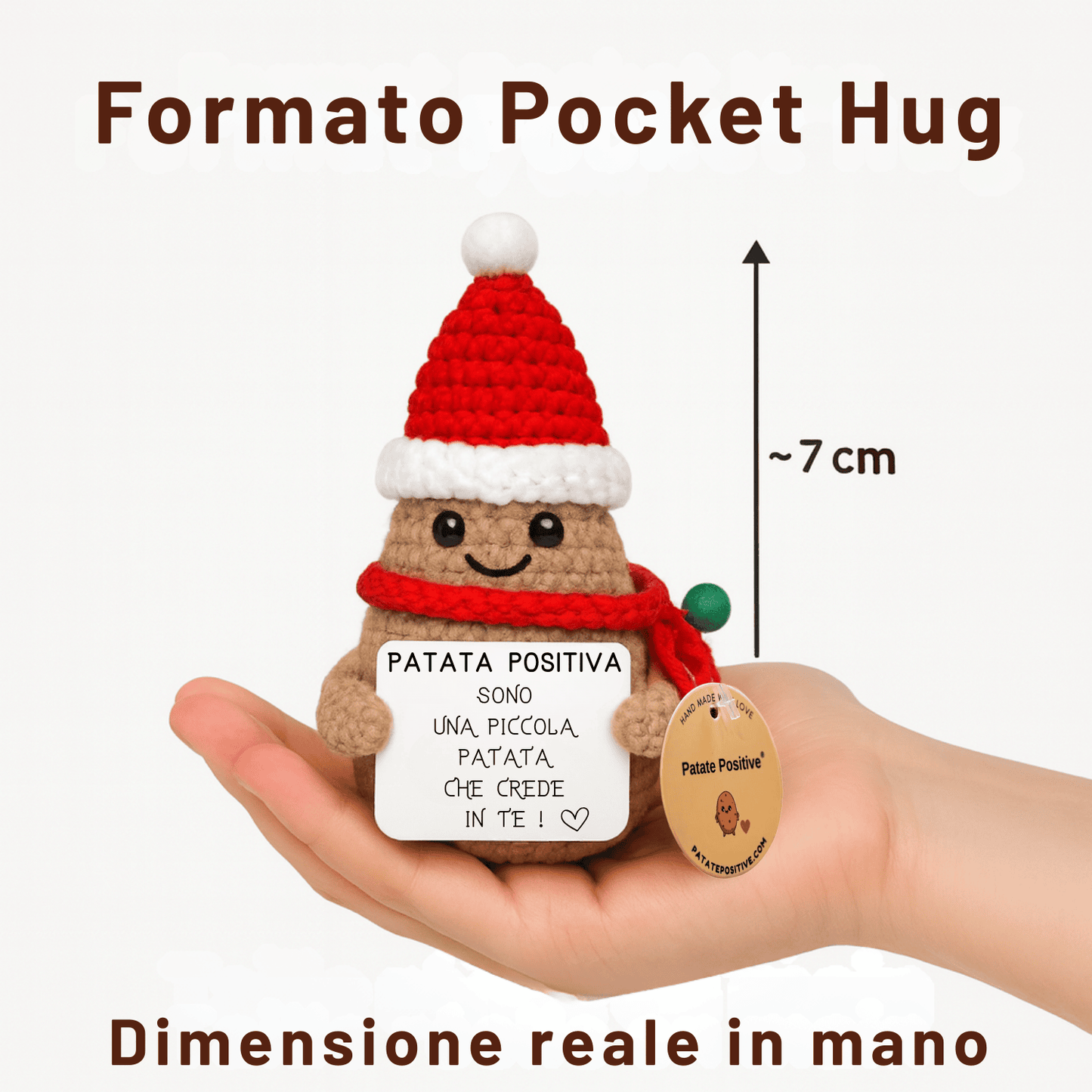 Pour l'instant, chaque Patate Positive mesure 7 cm de tendresse. Elle est petite mais pleine d'amour et de réconfort, cousue à la main juste pour vous !