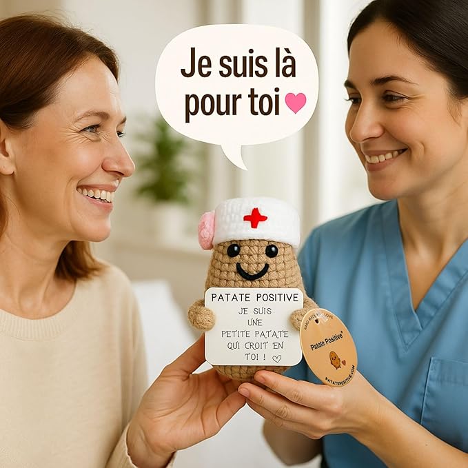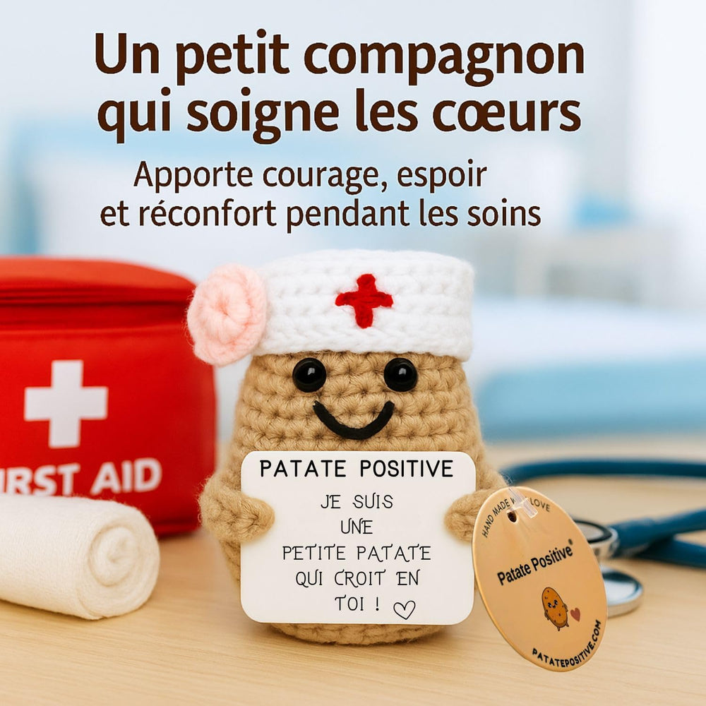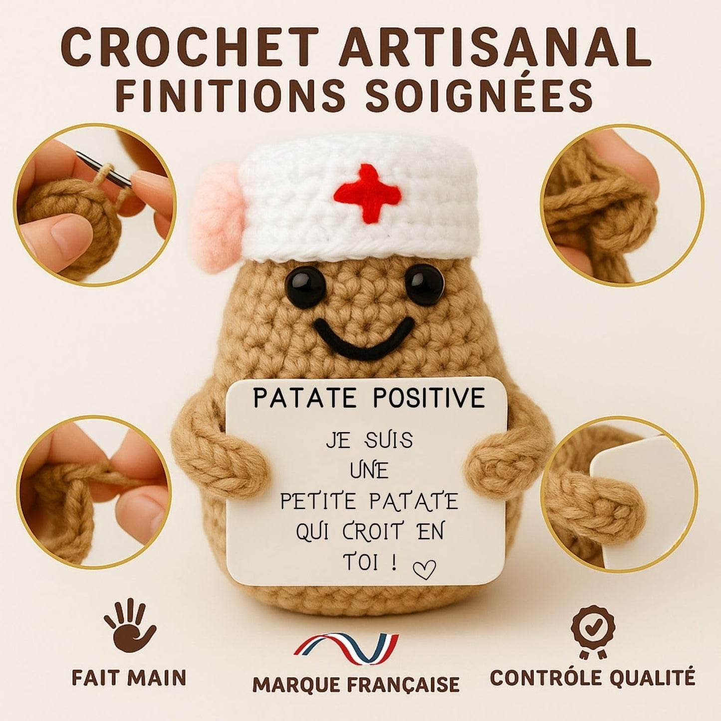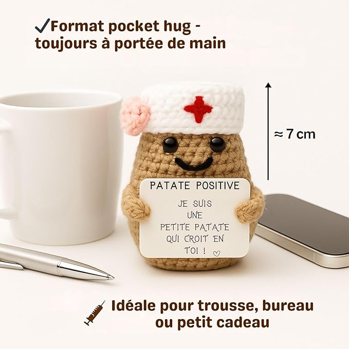 Per ora ogni patata positiva misura 7 cm di tenerezza. È piccolo ma pieno di amore e conforto, cucito a mano solo per te!